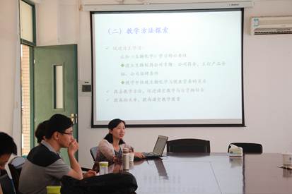 化工学院青年教师沙龙2017年第三期于5月9日12点30分在学院会议室举行,此次交流活动主要围绕优质课程建设和课堂教学经验展开。三名优秀青年教师赵珺博士、甘林火博士和赵艳玲博士分享了他们建设百门优质课程的经验,优质课件及讲义的制作技巧以及课堂中促进学生主动学习的方法,并针对青年教师如何提高教学能力给出了建议。